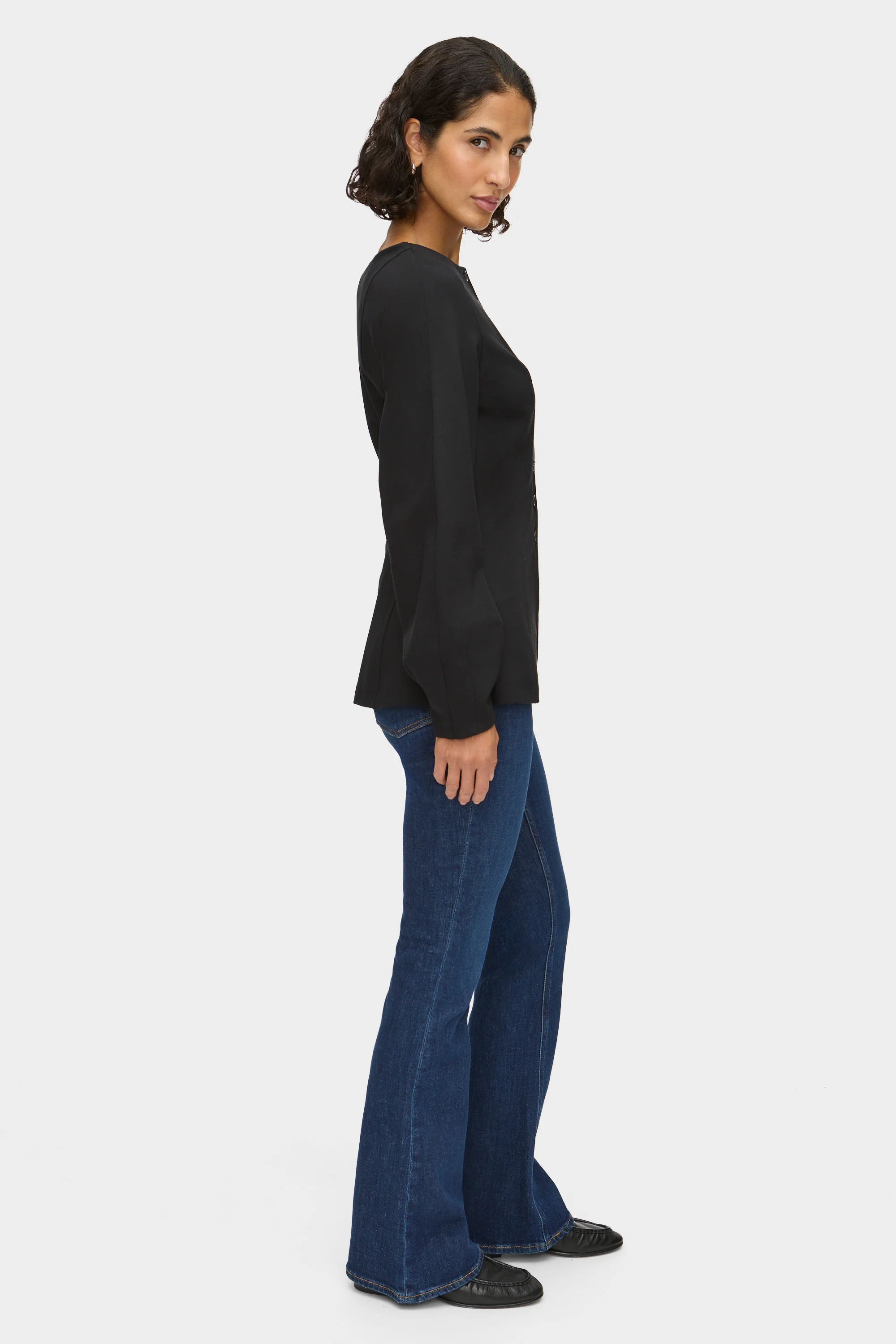 - Defined, fitted silhouette with a waist split, perfect for pairing with high-waisted bottoms