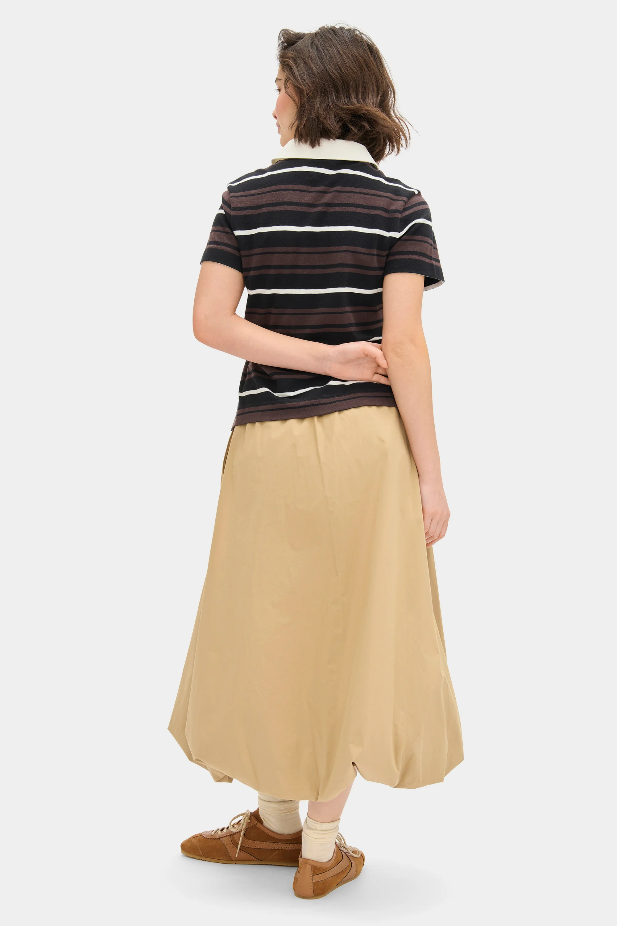 - Textured pique fabric with striped finish