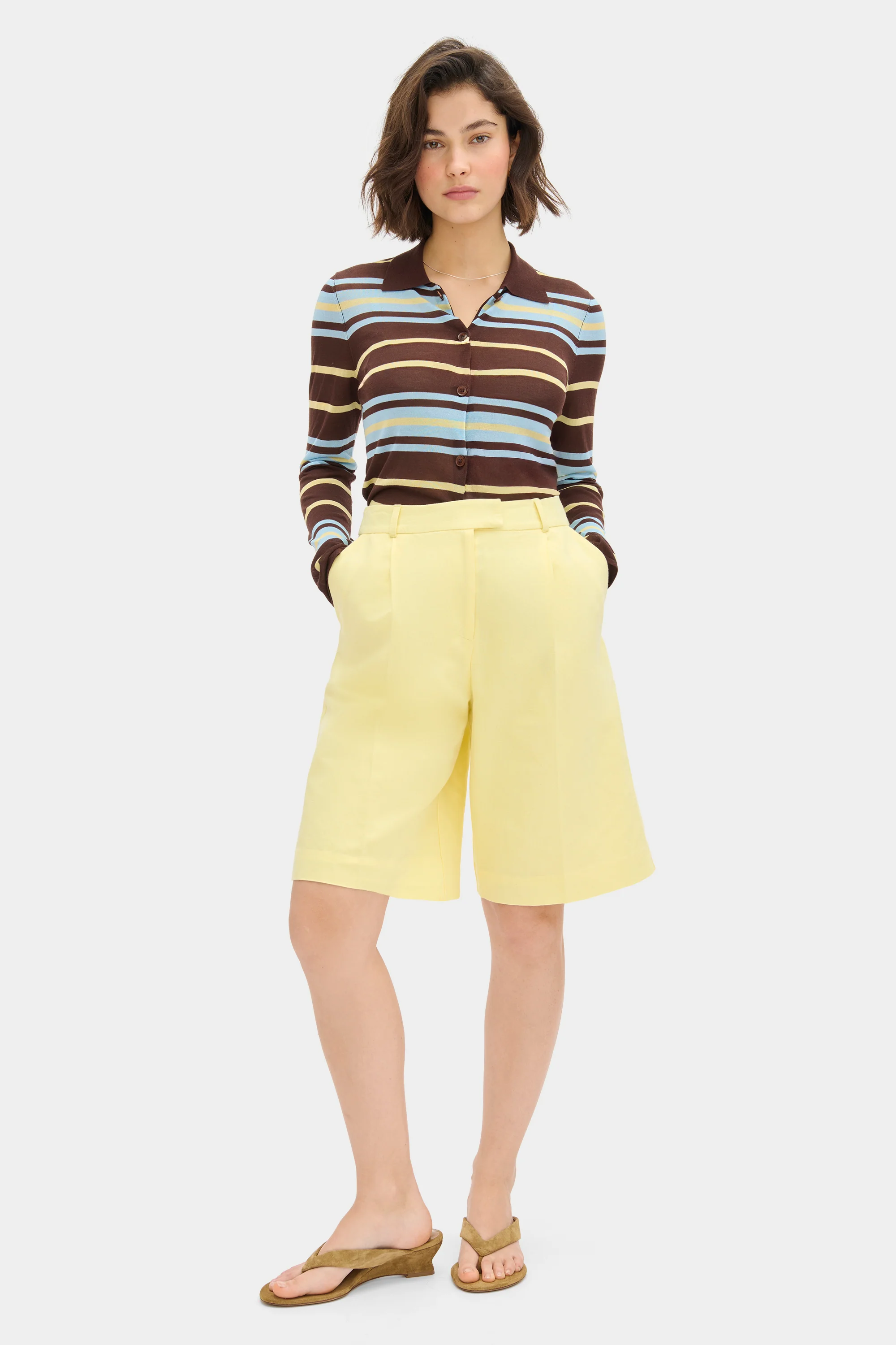 - fitted stripe knitted top with shirt collar
